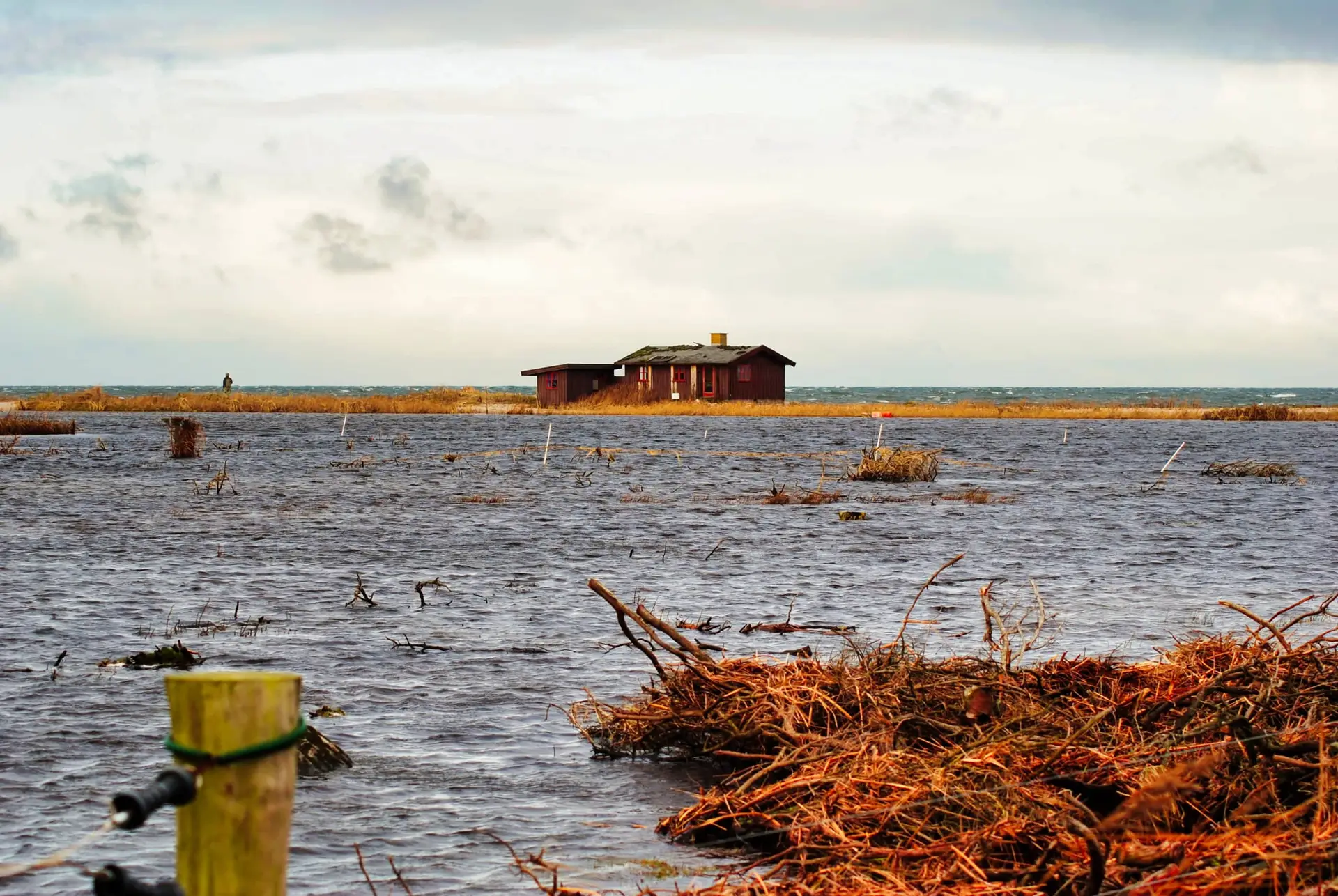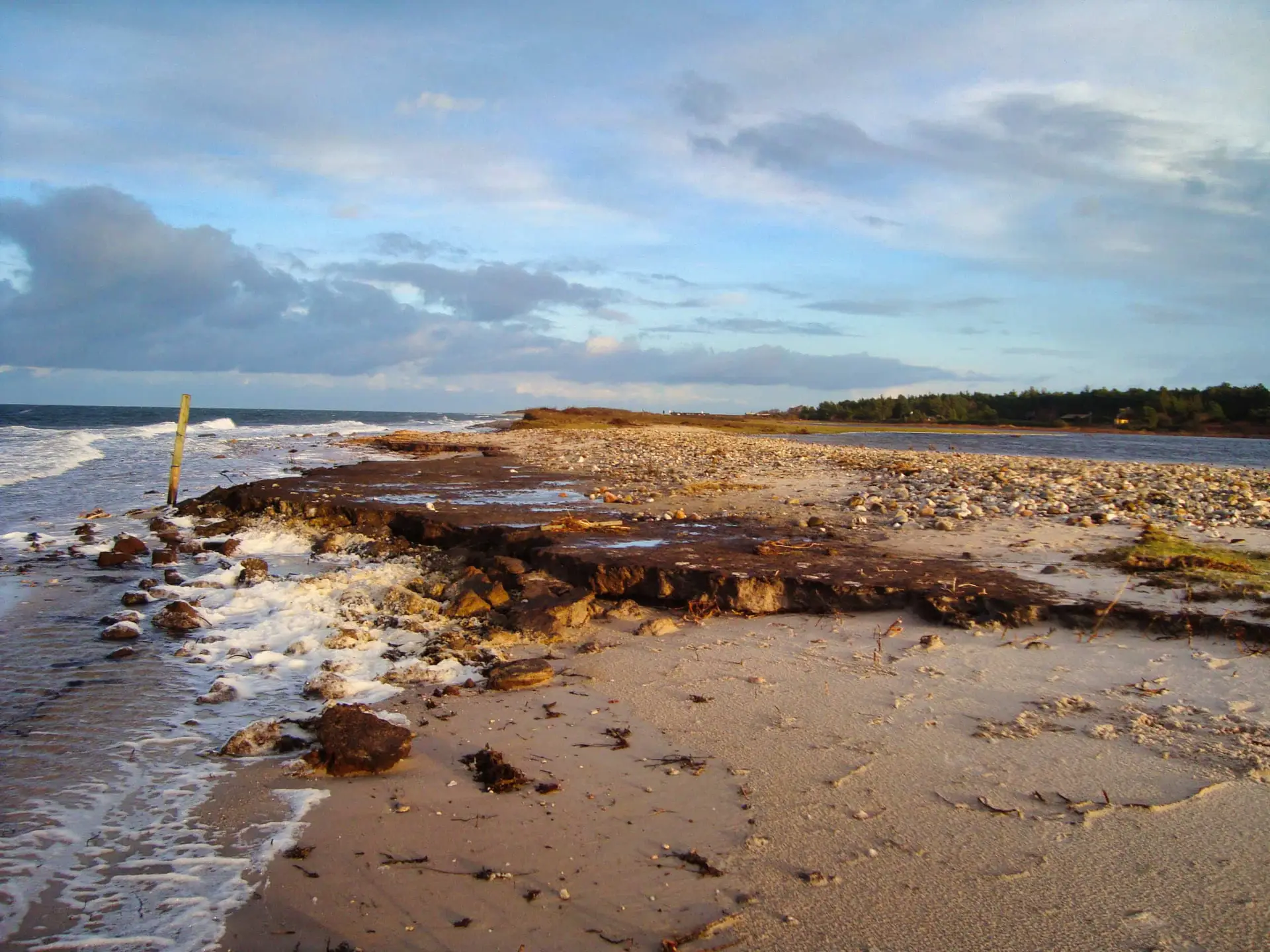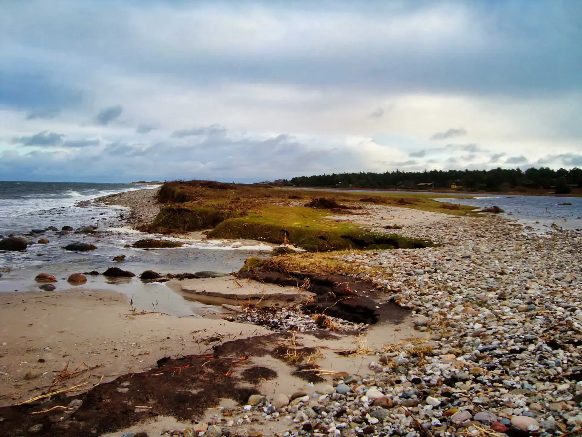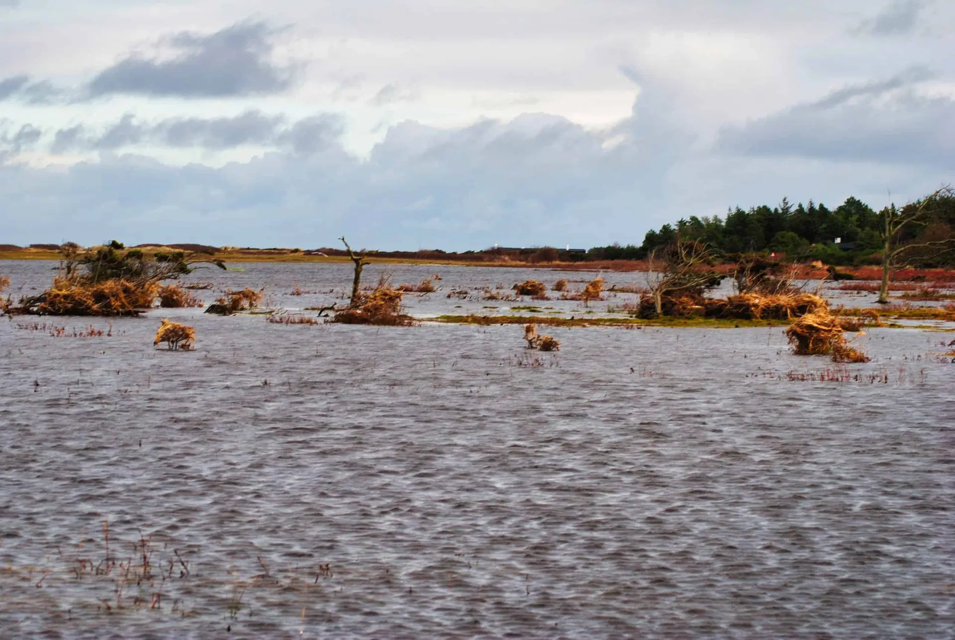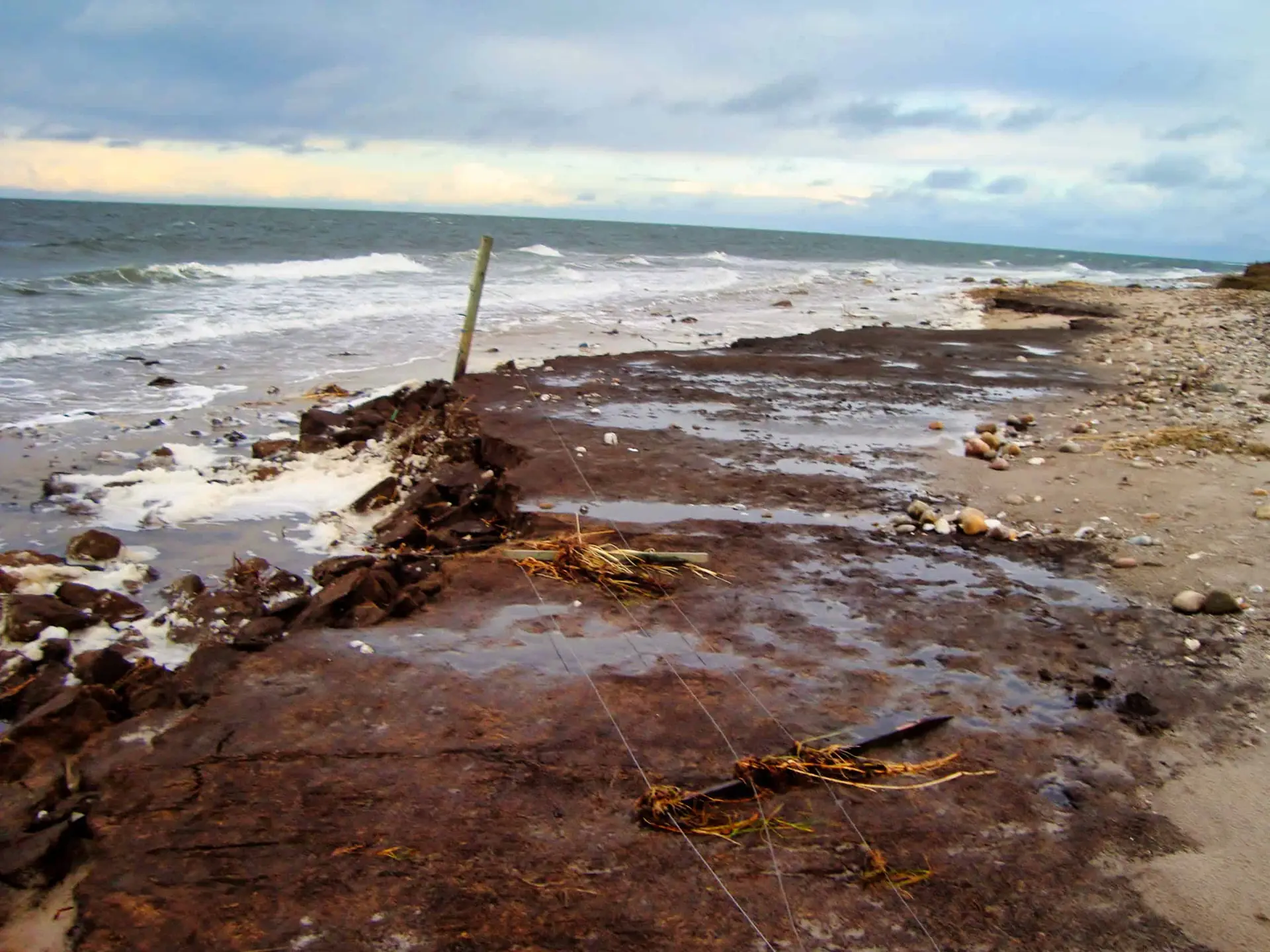 Efter 2 storme på kun 14 dage, er diget brudt ned mellem Flyndersø og Kattegat i Rørvig. Saltvand har derfor skyllet ind og oversvømmet engarealerne der udgør Flyndersø området. Oplev naturens kræfter, og se hvordan kysten er eroderet bort, og vandet løber tilbage i havet. Fotos er fra den 4. december 2011