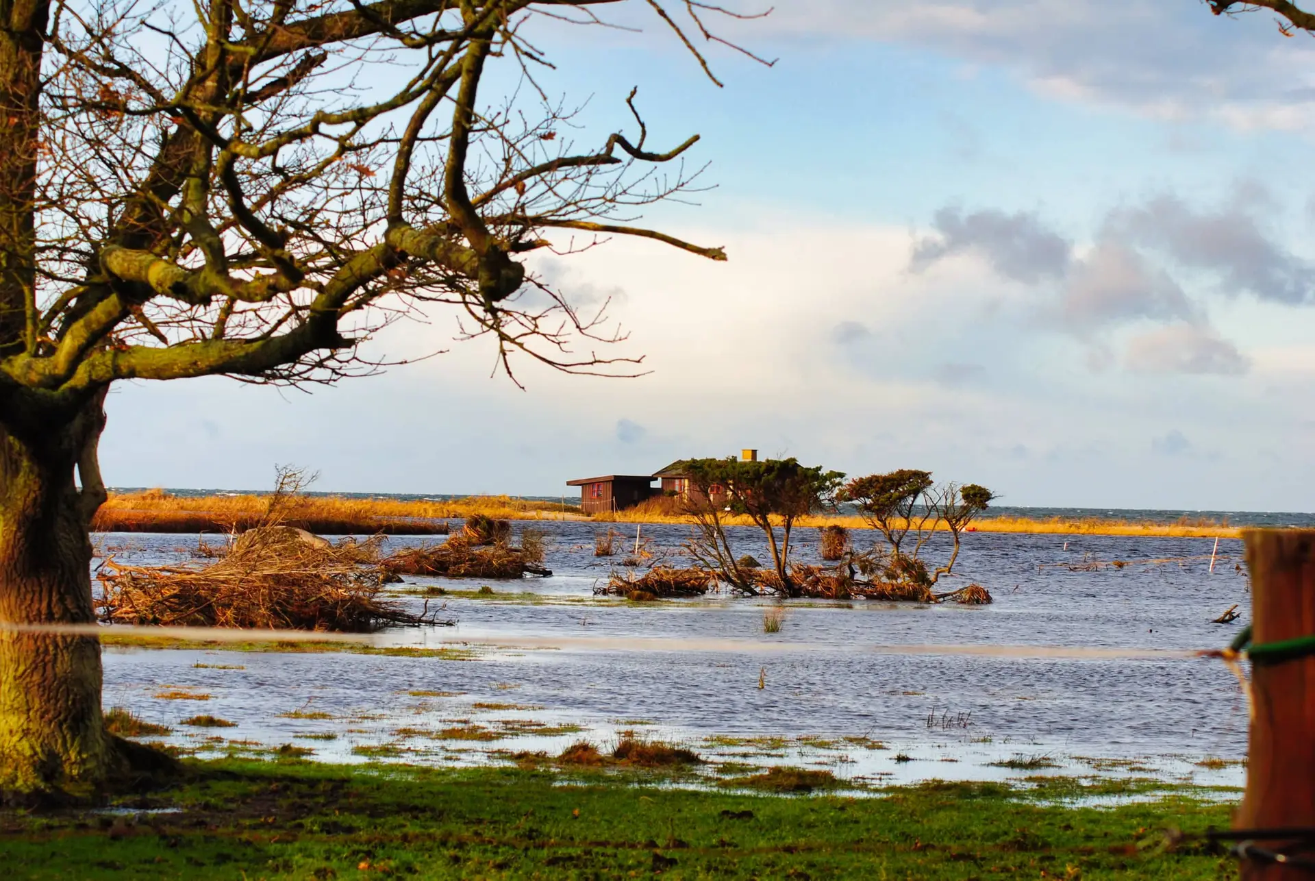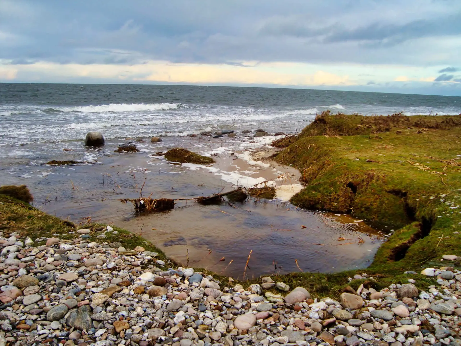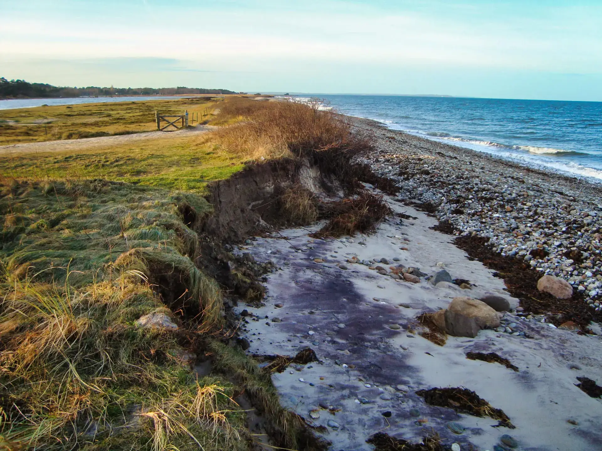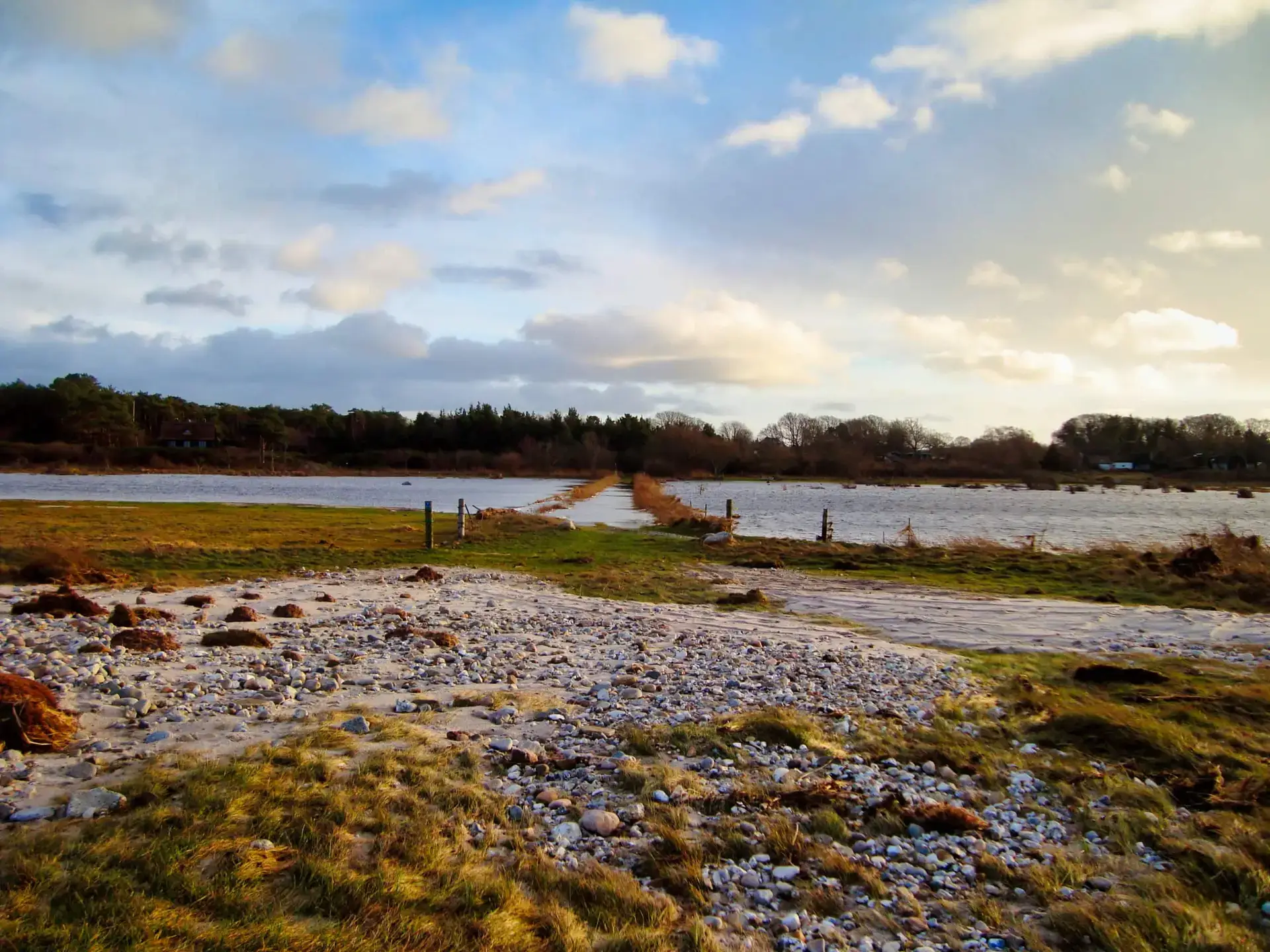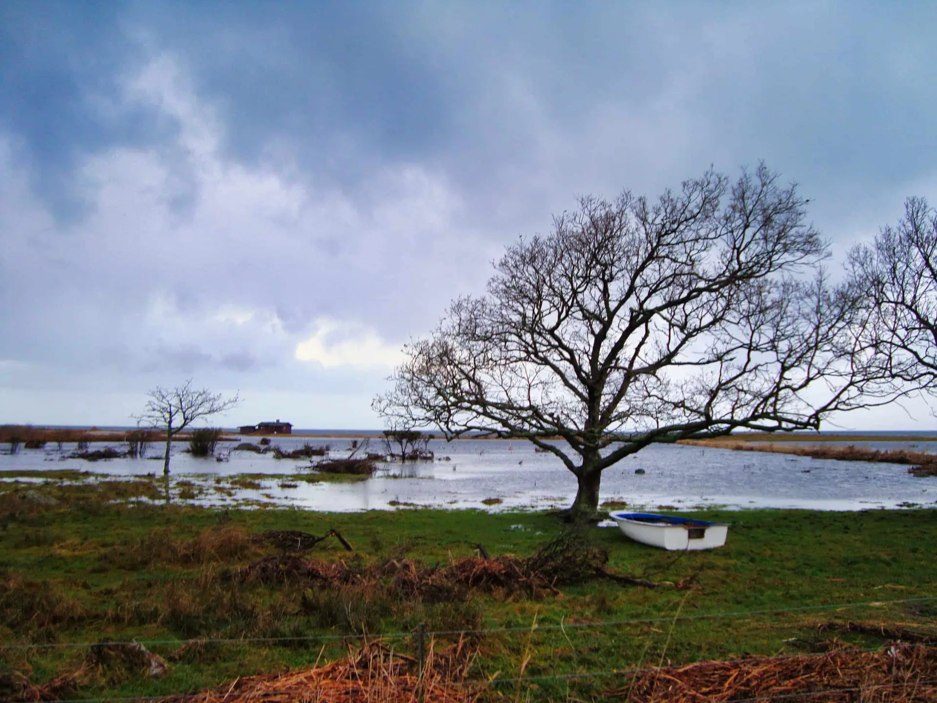 Efter 2 storme på kun 14 dage, er diget brudt ned mellem Flyndersø og Kattegat i Rørvig. Saltvand har derfor skyllet ind og oversvømmet engarealerne der udgør Flyndersø området. Oplev naturens kræfter, og se hvordan kysten er eroderet bort, og vandet løber tilbage i havet. Fotos er fra den 4. december 2011