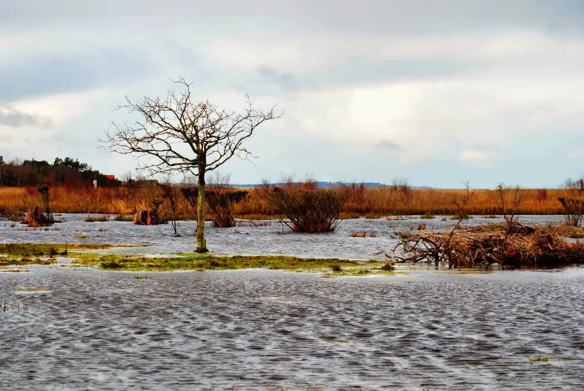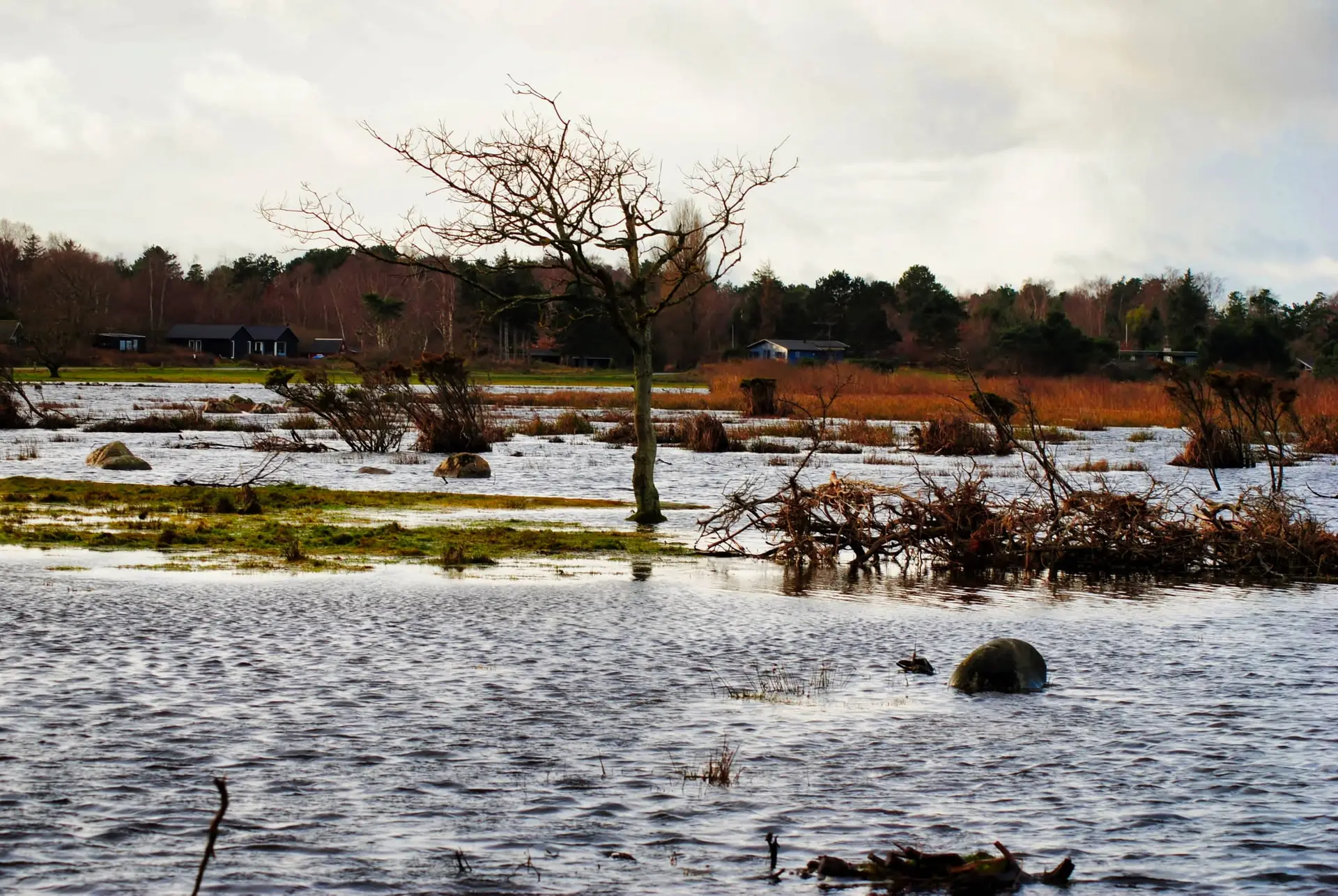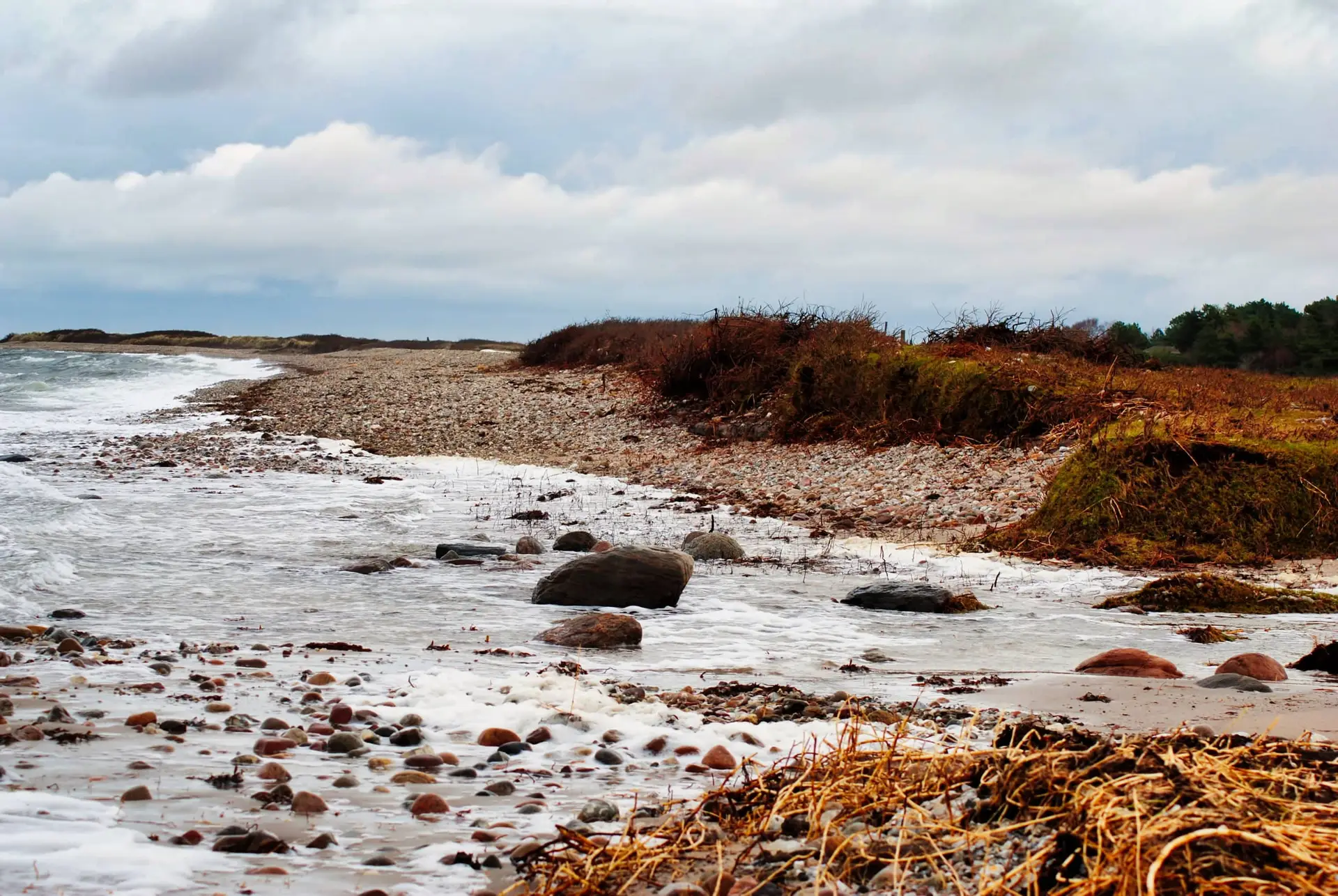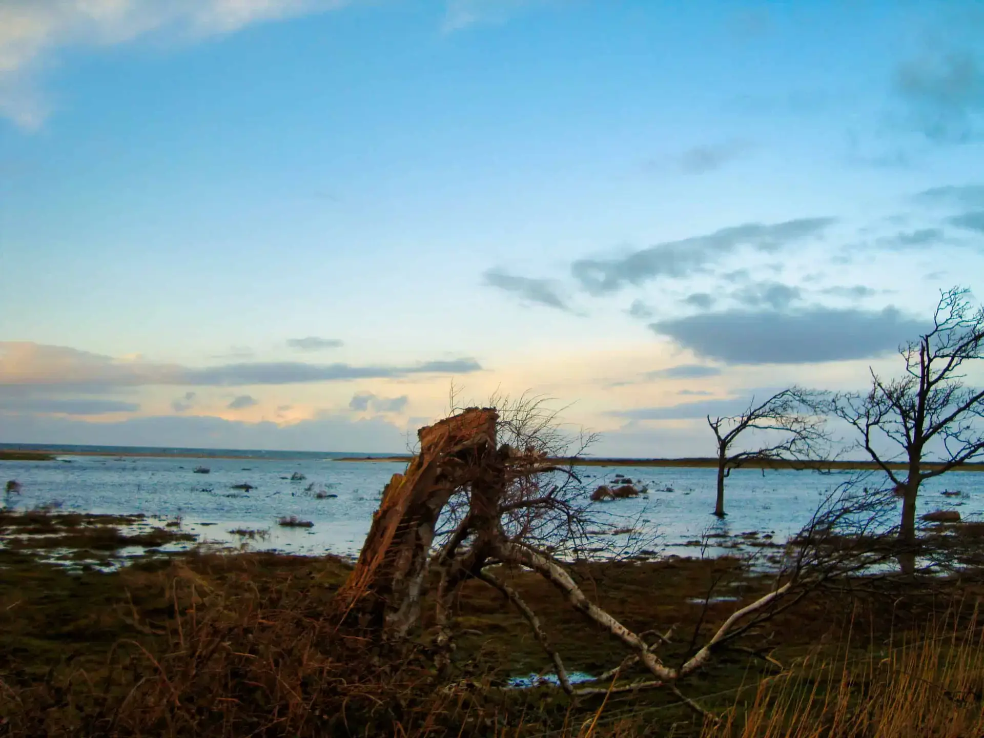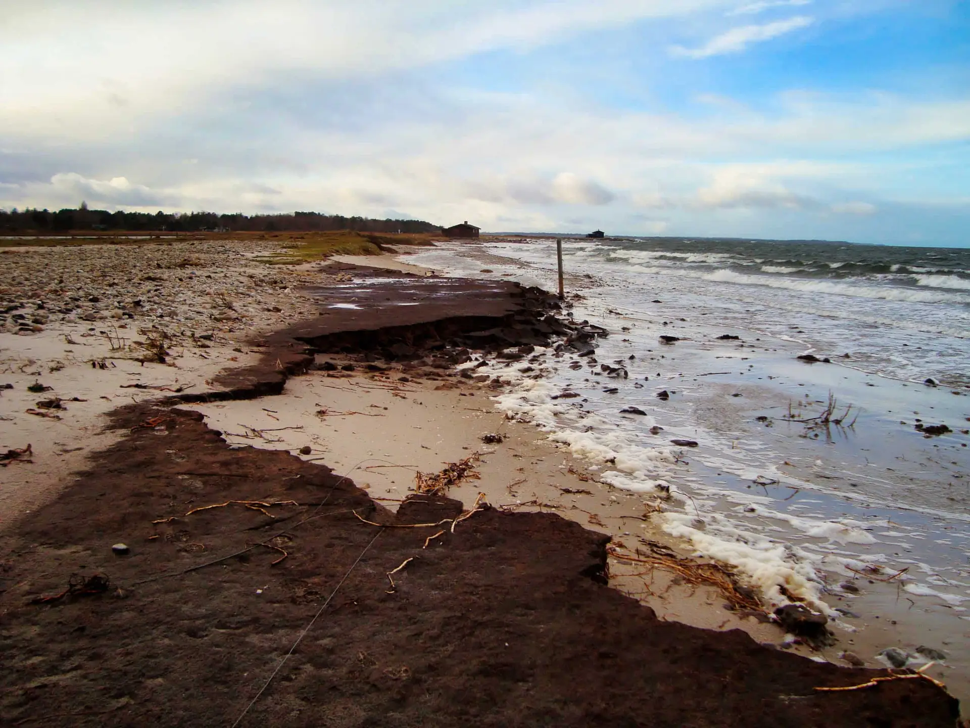 Efter 2 storme på kun 14 dage, er diget brudt ned mellem Flyndersø og Kattegat i Rørvig. Saltvand har derfor skyllet ind og oversvømmet engarealerne der udgør Flyndersø området. Oplev naturens kræfter, og se hvordan kysten er eroderet bort, og vandet løber tilbage i havet. Fotos er fra den 4. december 2011