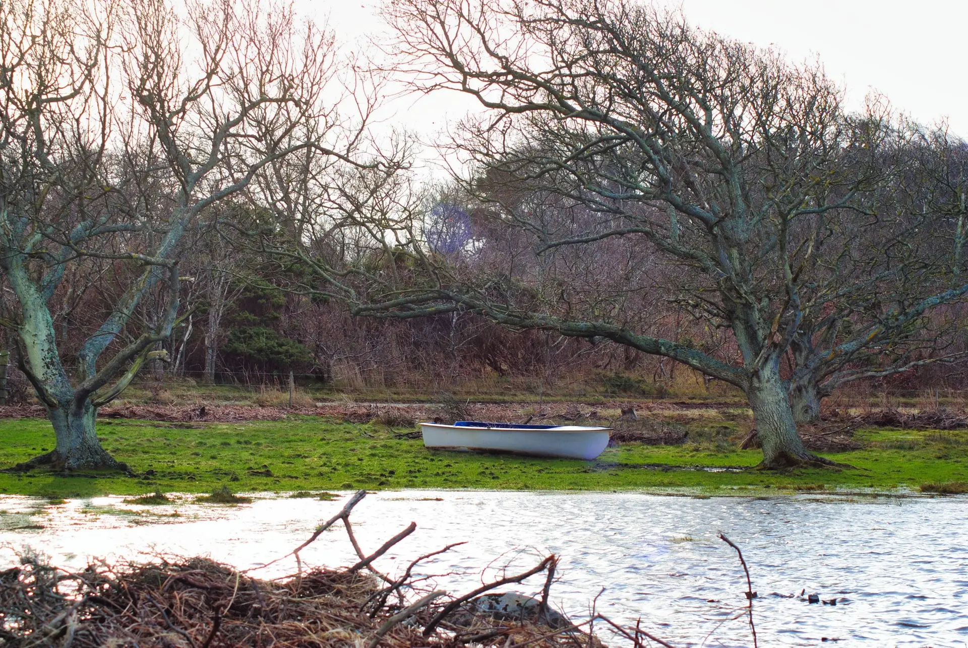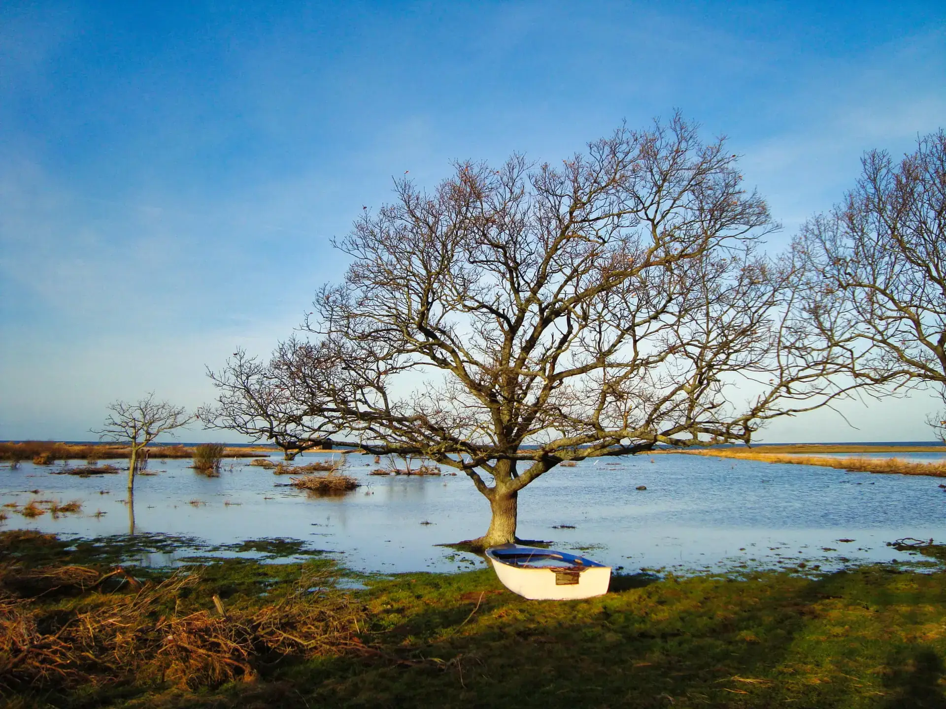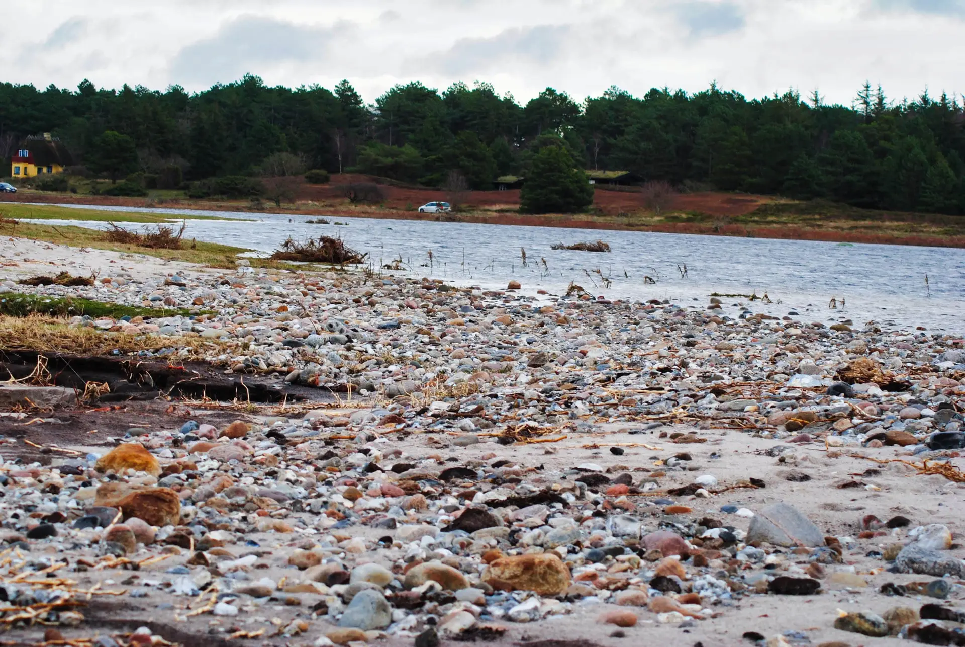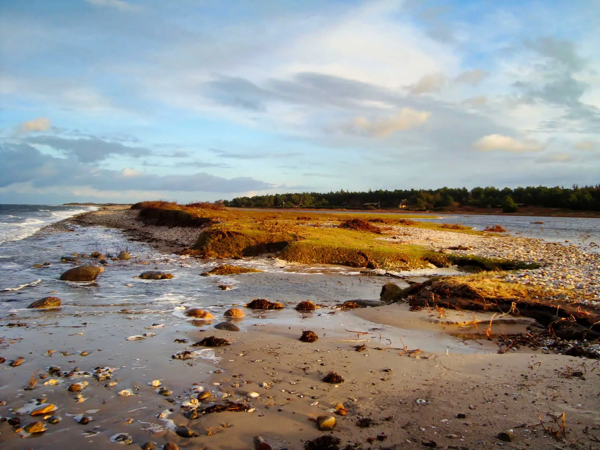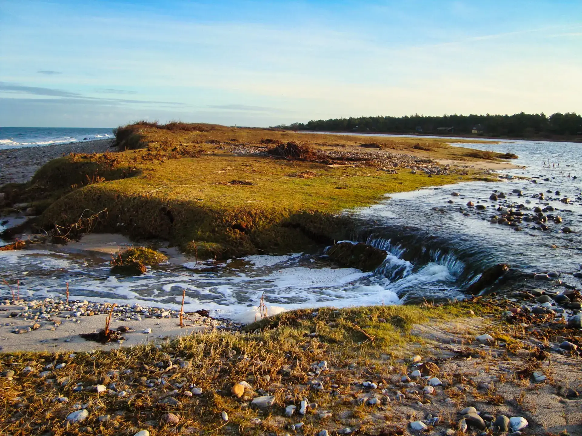 Efter 2 storme på kun 14 dage, er diget brudt ned mellem Flyndersø og Kattegat i Rørvig. Saltvand har derfor skyllet ind og oversvømmet engarealerne der udgør Flyndersø området. Oplev naturens kræfter, og se hvordan kysten er eroderet bort, og vandet løber tilbage i havet. Fotos er fra den 4. december 2011